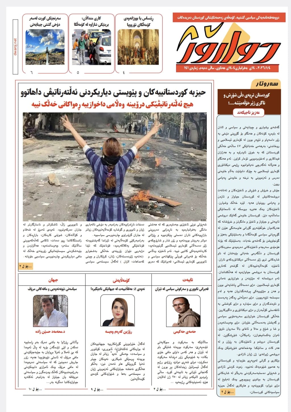 هاوڕێیان و خۆشەویستان ،ئاگادارتان دەکەین کە ژمارە ١٤١ی بڵاوکراوەی دواڕۆژ کە کۆمەڵەی زەحمەتکێشان هەر دووحەوتوجارێک دیداتە دەرێ، کەوتە بەردیدەی خوێنەران …